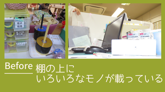 現状:棚の上にモノがごちゃごちゃとモノが置かれています。