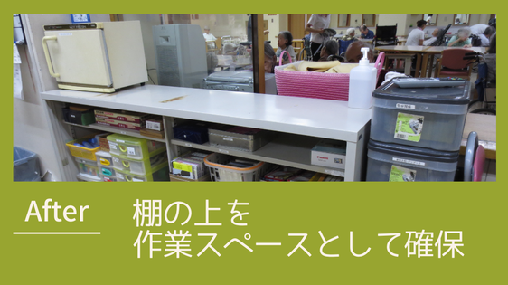 収納ばかりに気がいって忘れがちな作業スペースですが、効率を上げるうえでは欠かせません。また見た目を考えても、棚の上にごちゃごちゃとモノが置かれている職場は、決して気持ちのいい職場とは言えません。