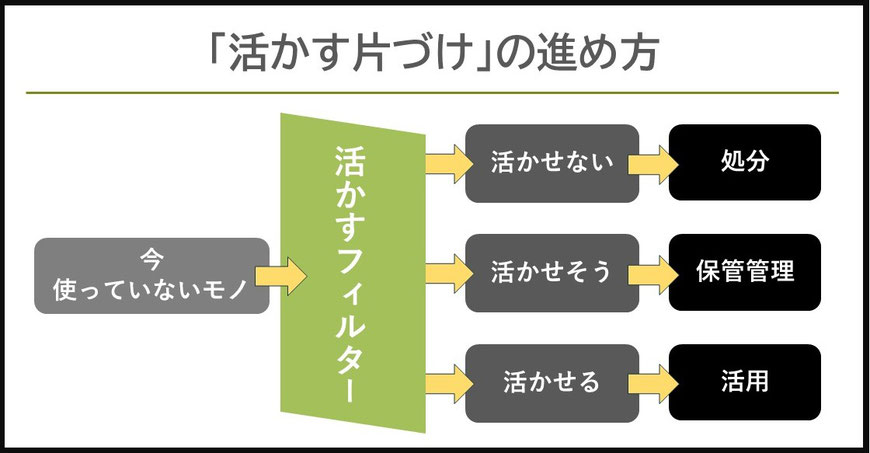 「活かすフィルター」を通過させてから、今使っていないモノの対処を決めていく、活かすことが前提の片づけ方。