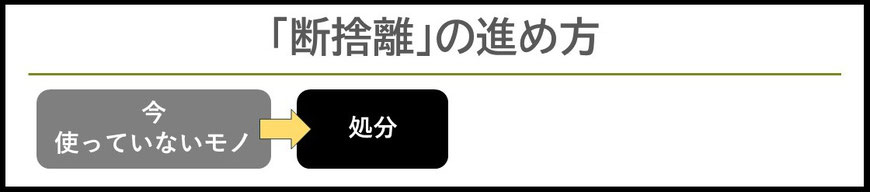 今使っていないモノの対処が処分に直結している、捨てることが前提の片づけ方。